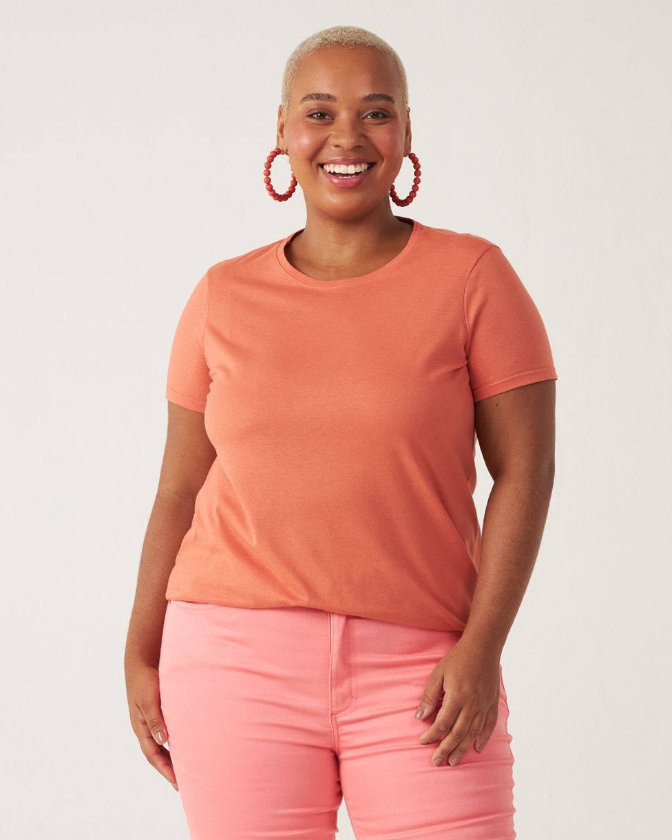 Blusa Básica Feminina Plus Size Decote Redondo Em Algodão Orgânico