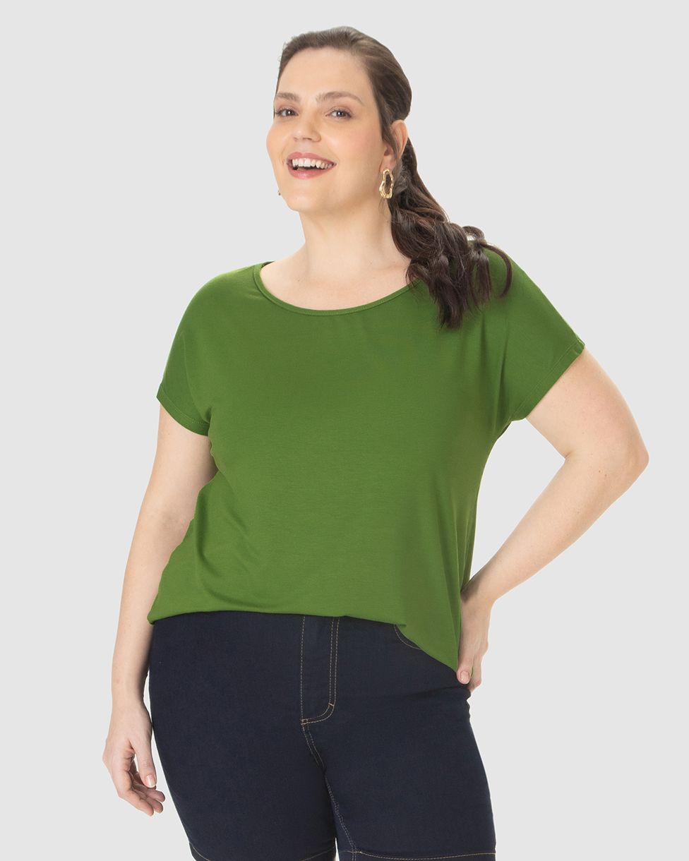 Blusa Básica Feminina Plus Size Manga Japonesa Em Viscose Stretch