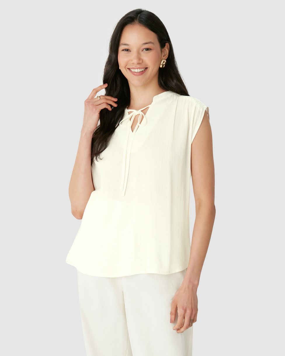 Blusa Bata Feminina Abertura Frontal Amarração Em Viscose Lurex Off White - G
