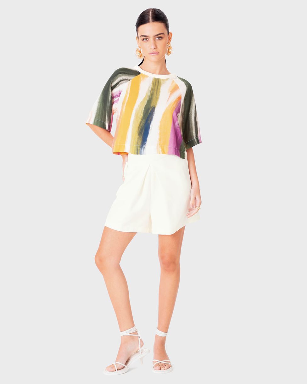 Blusa Box Feminina Decote Retilínea Estampa Digital Em Viscose - ENFIM Off White - G