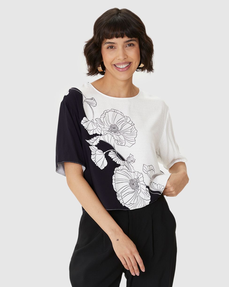 Blusa Box Feminina Estampada Manga Curta Em Viscose