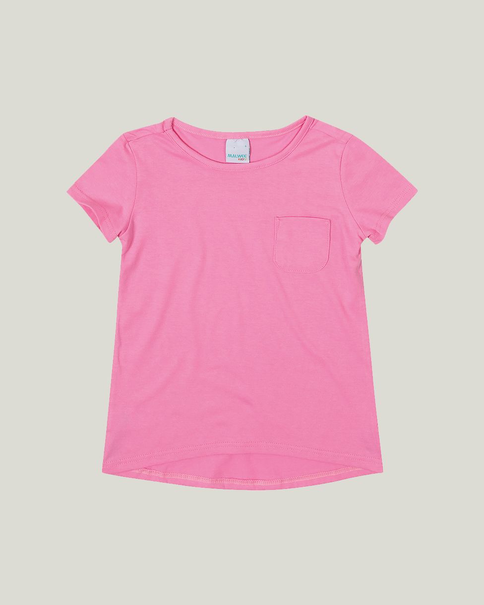 Blusa confeccionada em meia malha. Modelagem mullet, com parte posterior maior. Modelo com decote redondo e mangas curtas. Detalhe de bolso funcional. Uma peça básica e ideal para aproveitar os dias quentes com a família. Combine com calça clochard e tênis de caninho colorido.