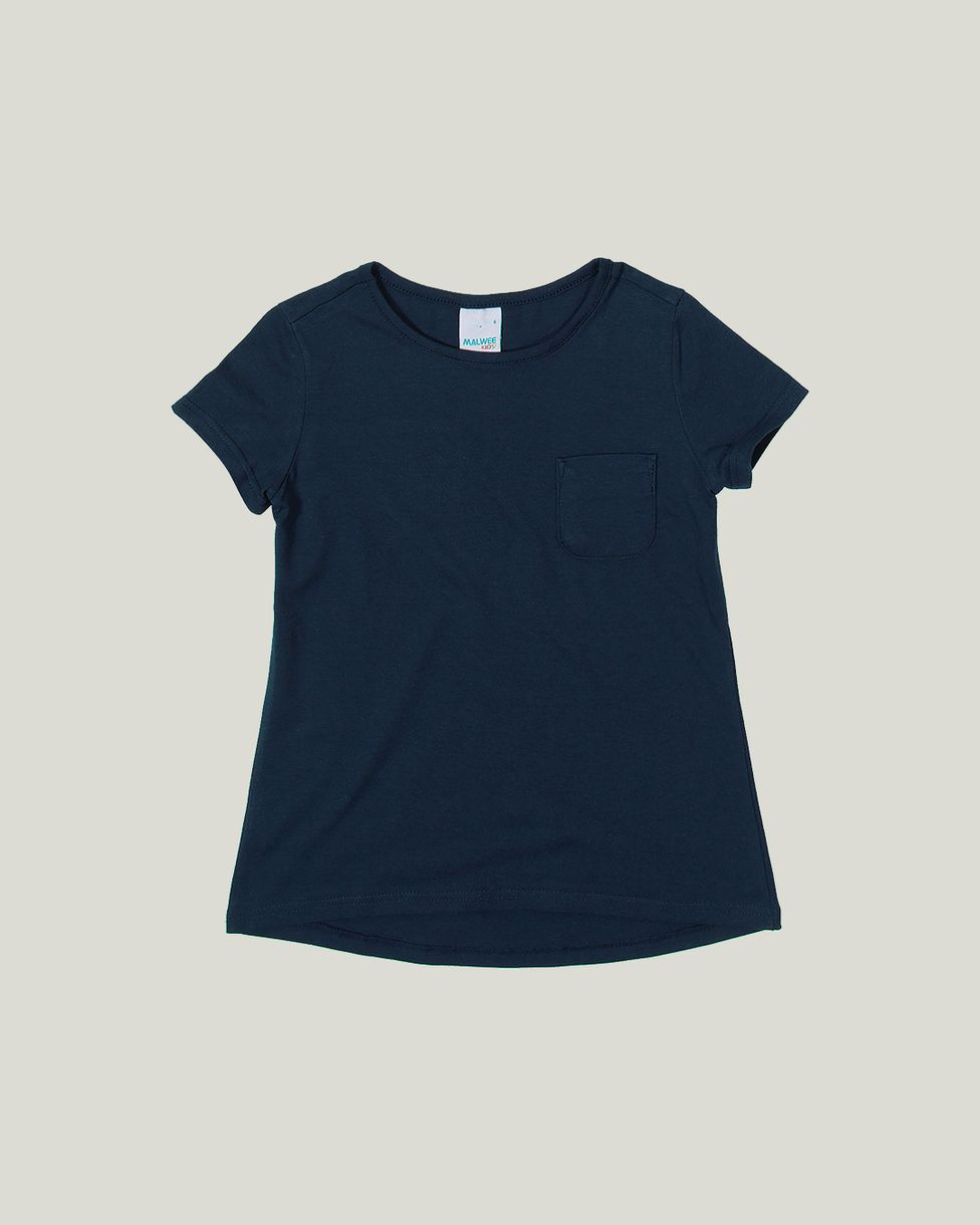 Blusa confeccionada em meia malha. Modelagem mullet, com parte posterior maior. Modelo com decote redondo e mangas curtas. Detalhe de bolso funcional. Uma peça básica e ideal para aproveitar os dias quentes com a família. Combine com calça clochard e tênis de caninho colorido.