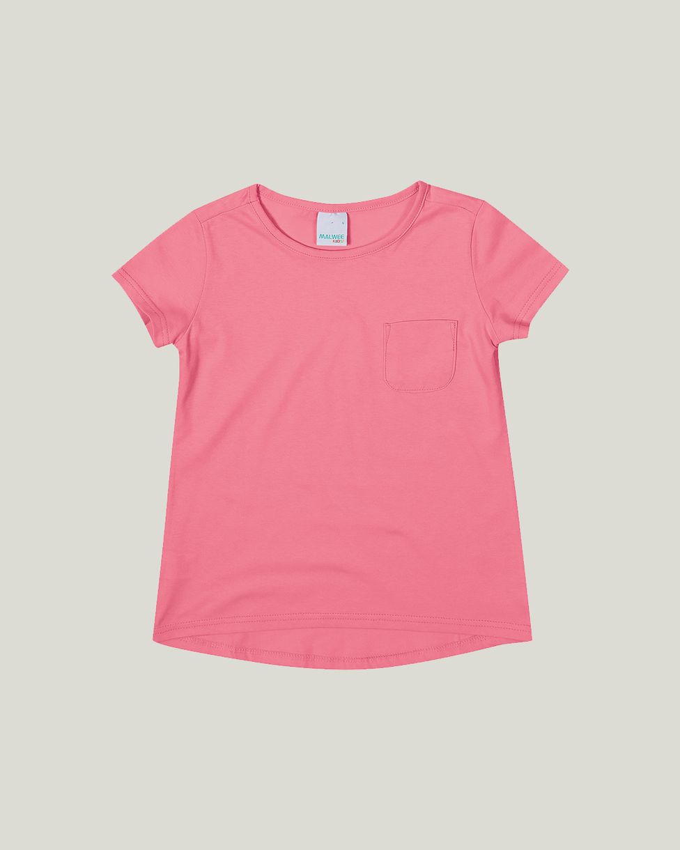 Blusa confeccionada em meia malha. Modelagem mullet, com parte posterior maior. Modelo com decote redondo e mangas curtas. Detalhe de bolso funcional. Uma peça básica e ideal para aproveitar os dias quentes com a família. Combine com calça clochard e tênis de caninho colorido.