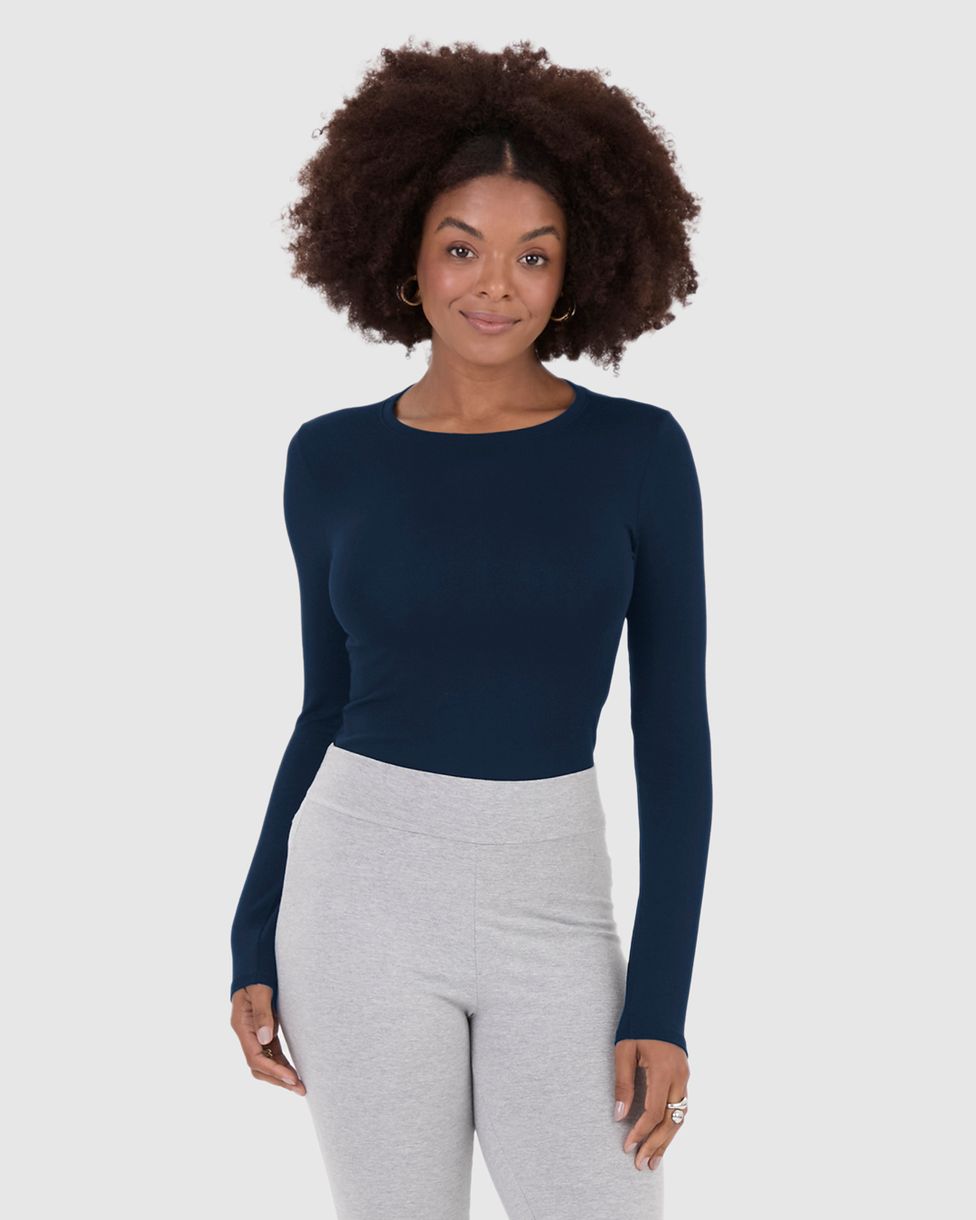 • Design: Decote redondo e manga longa, para um visual elegante e moderno