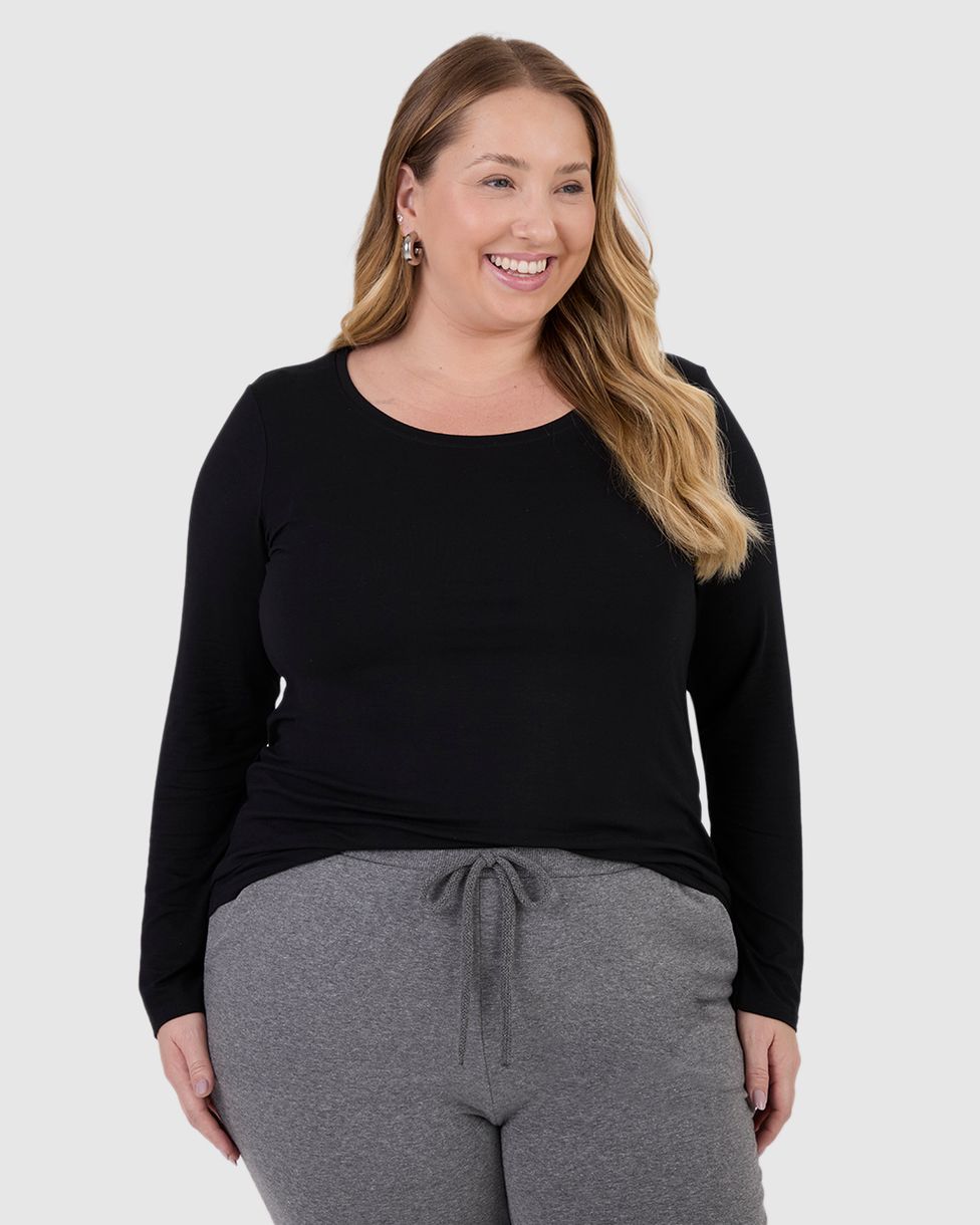 Blusa Básica Feminina Plus Size Decote Redondo Em Viscose Stretch