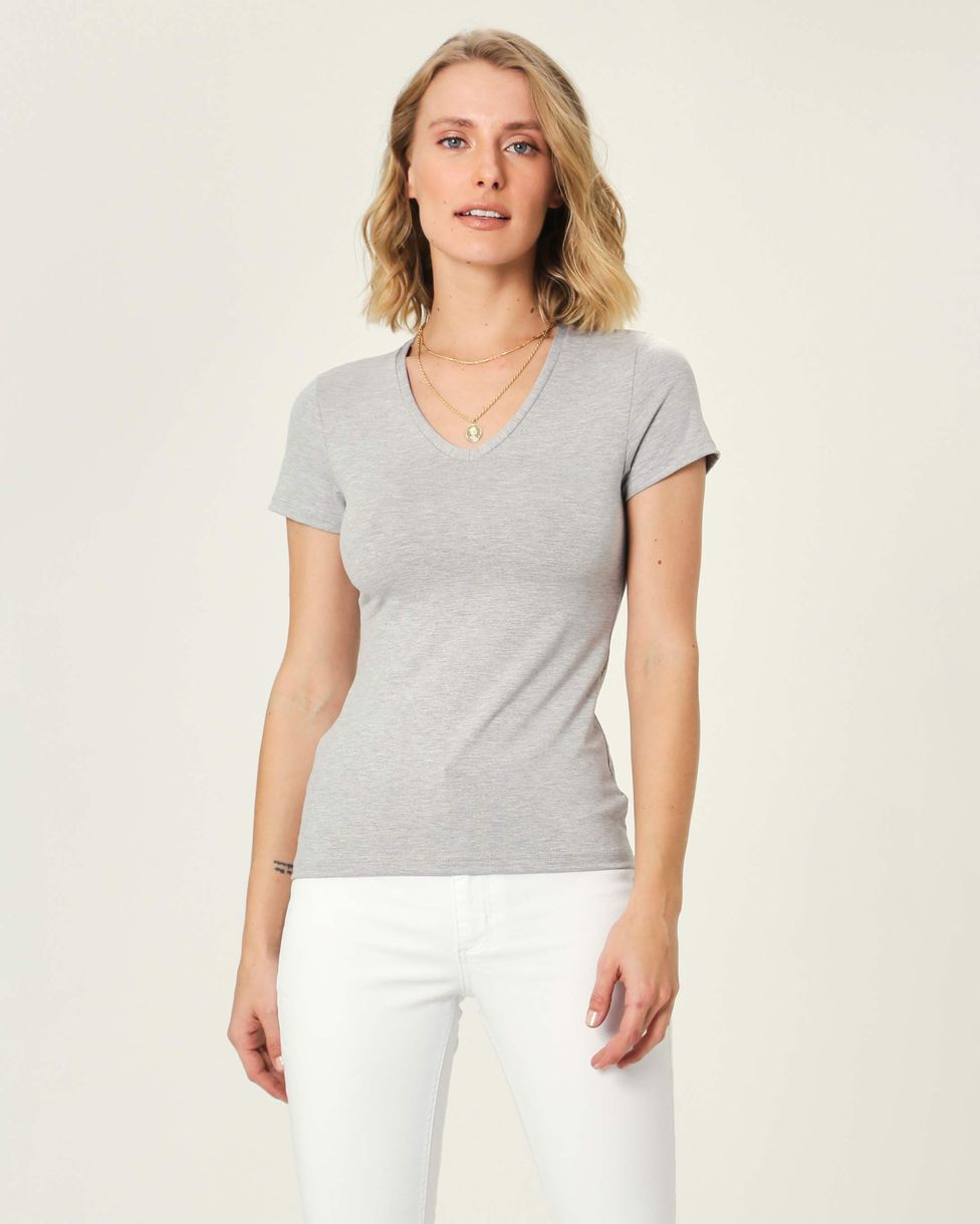 Blusa Básica Feminina Decote V Em Viscose Stretch