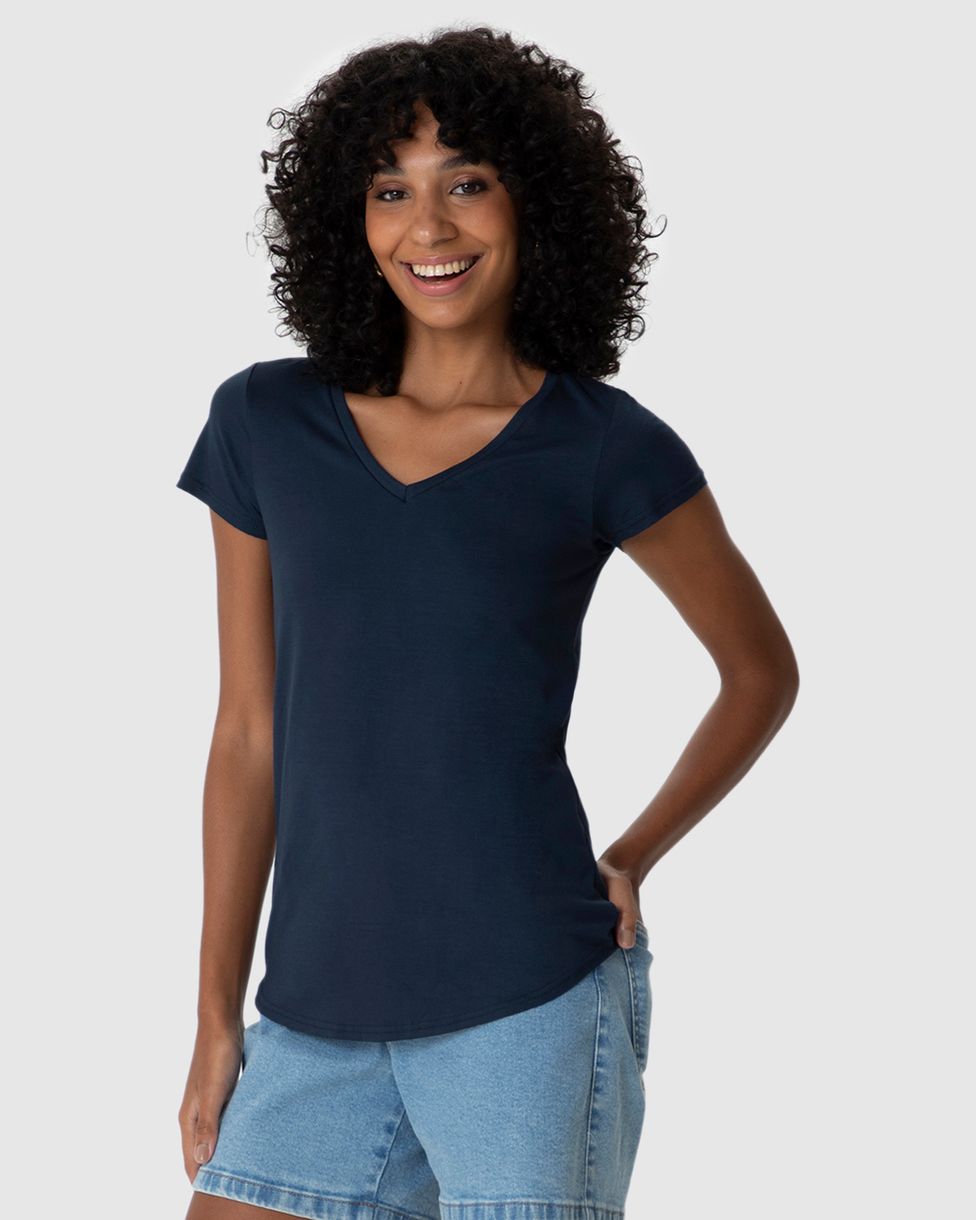 Blusa Básica Feminina Mullet Decote V Em Viscose Stretch