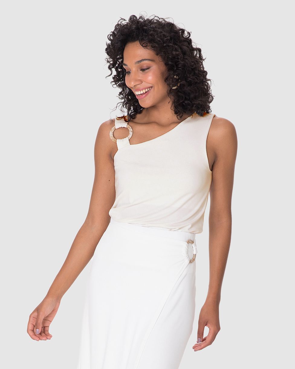 Blusa Feminina Assimétrica Alça Detalhe Com Argola Em Viscose Stretch