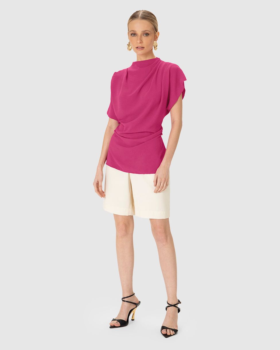 Blusa Feminina Assimétrica Detalhe Pregas Em Tecido Leve Texturizado - ENFIM