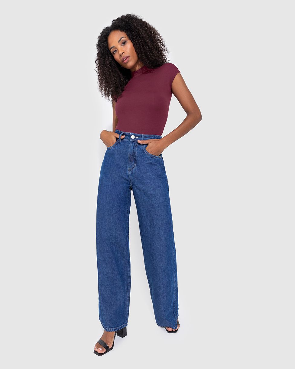 Blusa Feminina Baby Look Gola Alta Em Viscose Stretch - ENFIM