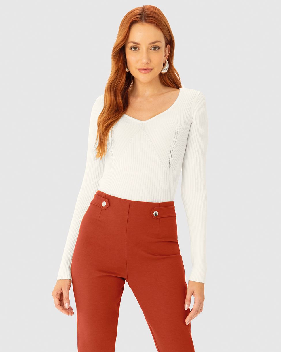 FemininoBlusas e CamisetasBlusas Manga LongaBlusa Feminina Decote Princesa Em Tricô - ENFIM