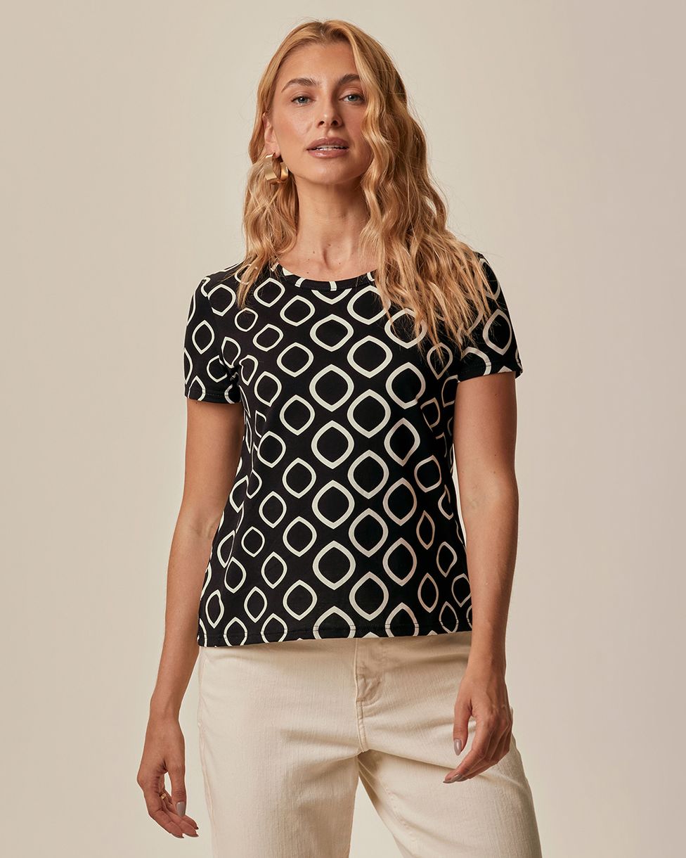Blusa Feminina Decote Redondo Estampada Em Algodão