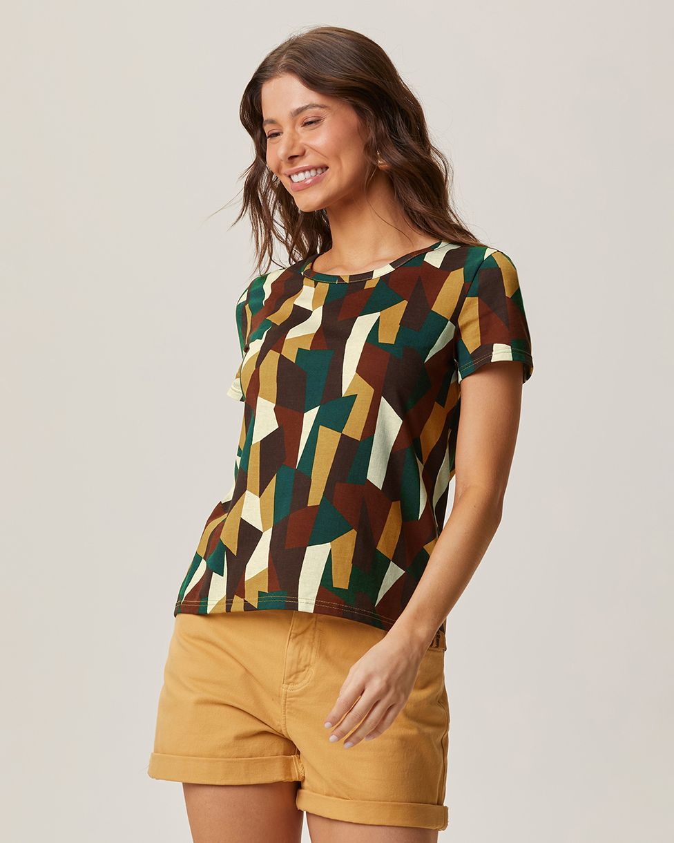 Blusa Feminina Decote Redondo Estampada Em Algodão