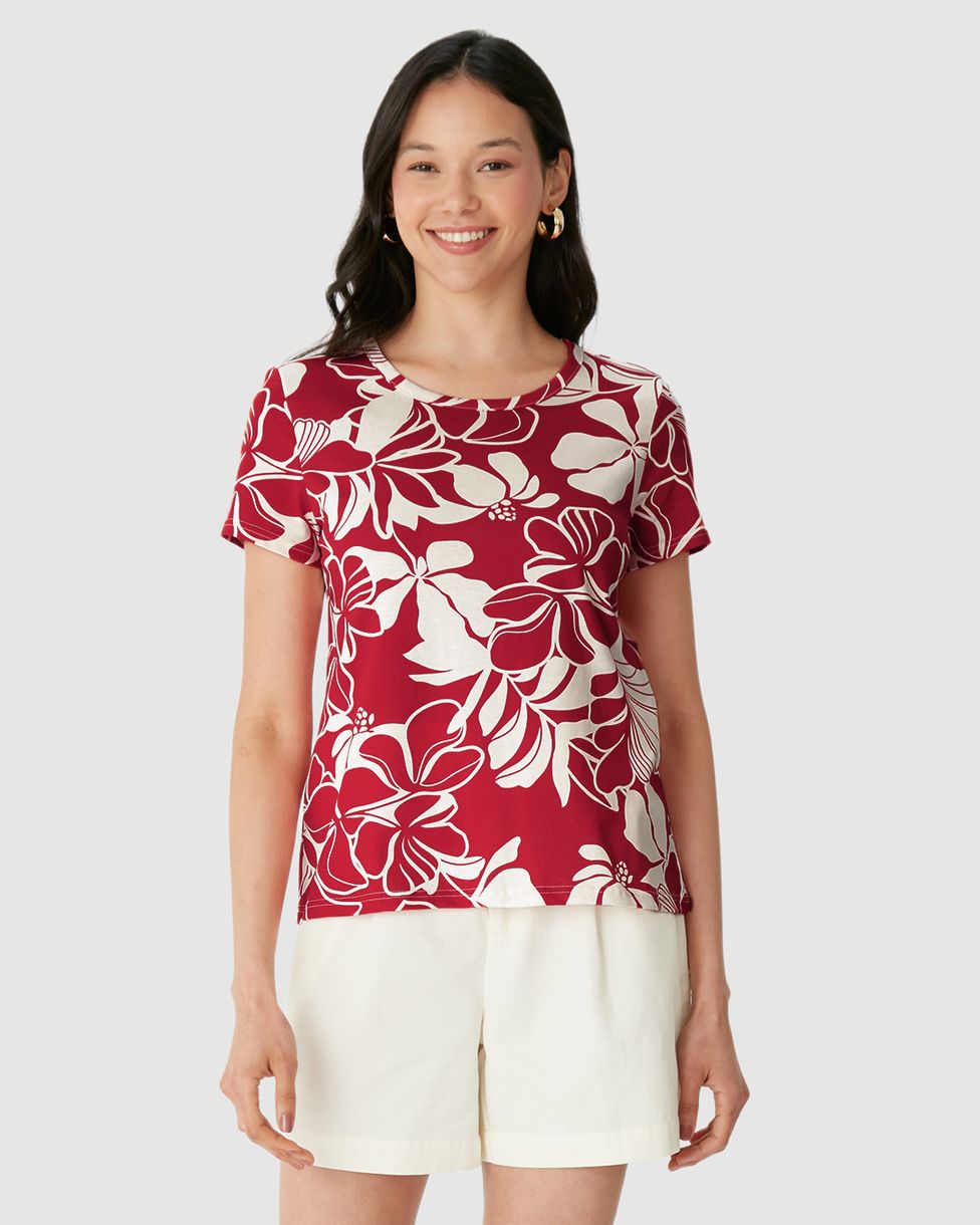 Blusa Feminina Decote Redondo Estampada Em Algodão Vermelho - P
