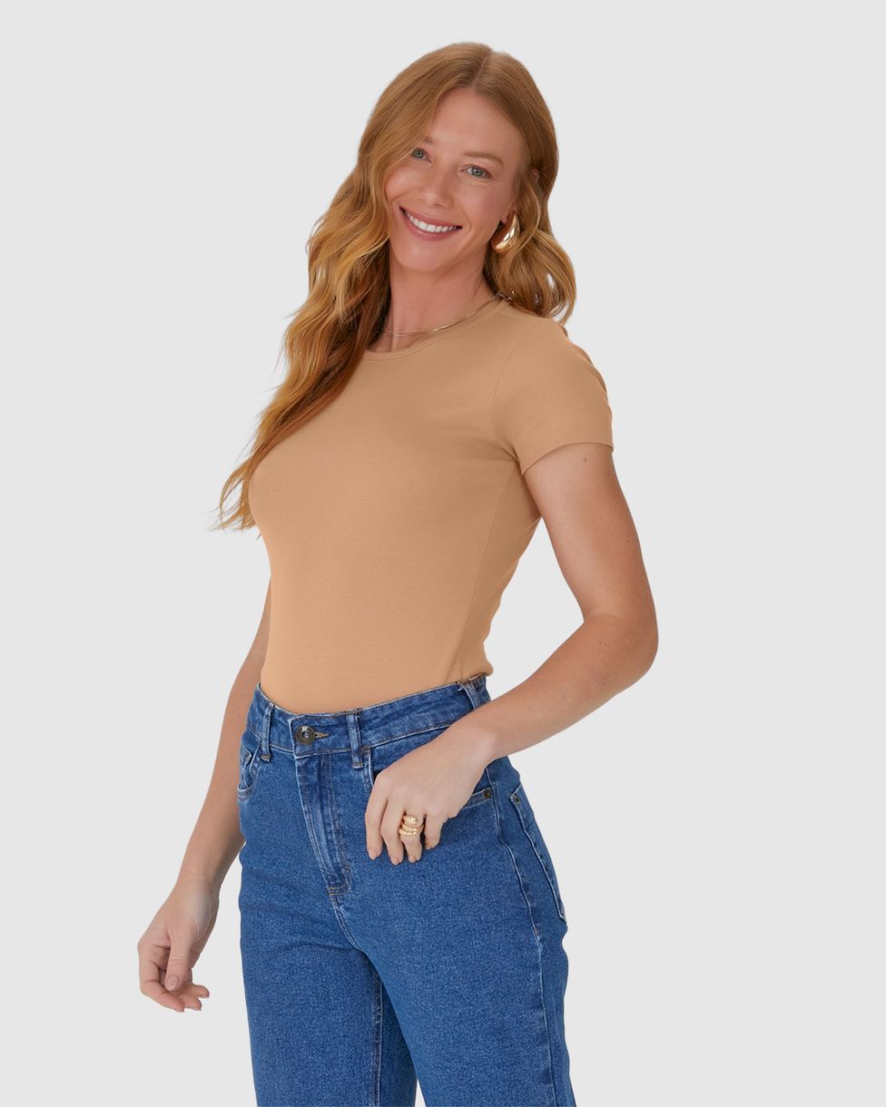 Blusa Feminina Decote Redondo Manga Curta Em Algodão