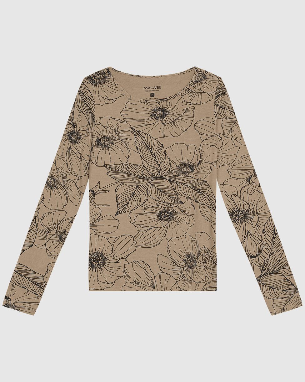 Blusa Feminina Estampada Decote Canoa Manga Longa Em Viscose Stretch