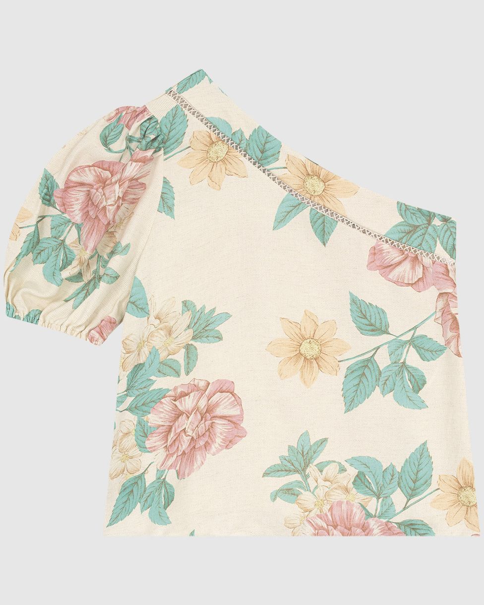 Blusa Feminina Estampada Decote Ombro Só Em Tecido Texturizado
