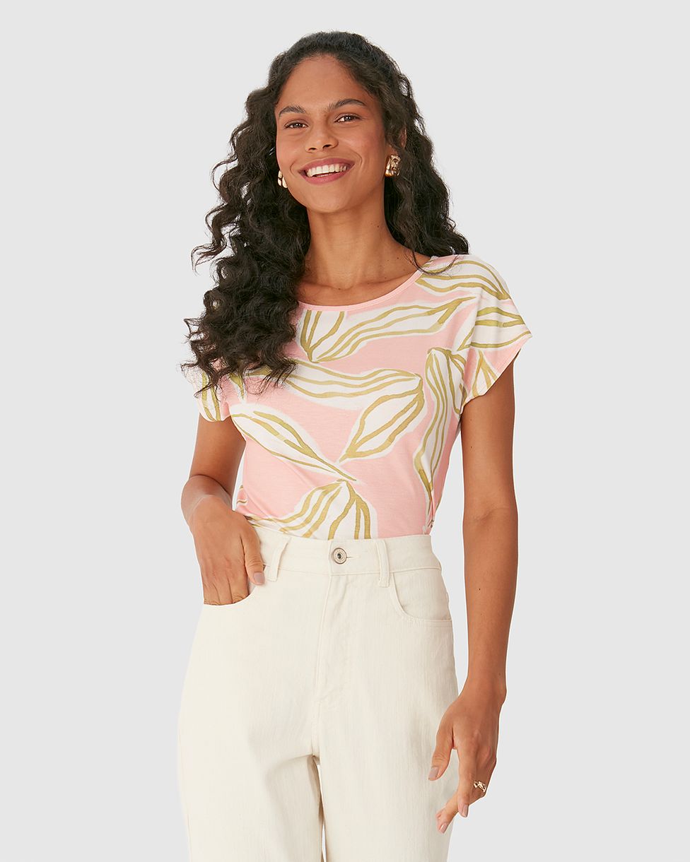 Blusa Feminina Estampada Decote Redondo Manga Curta Em Viscose Stretch