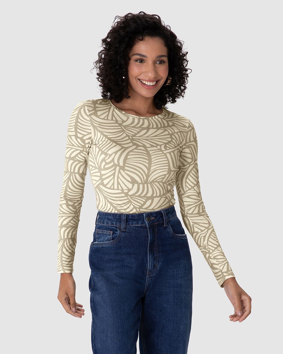 Blusa Feminina Estampada Decote Redondo Manga Longa Em Viscose Stretch