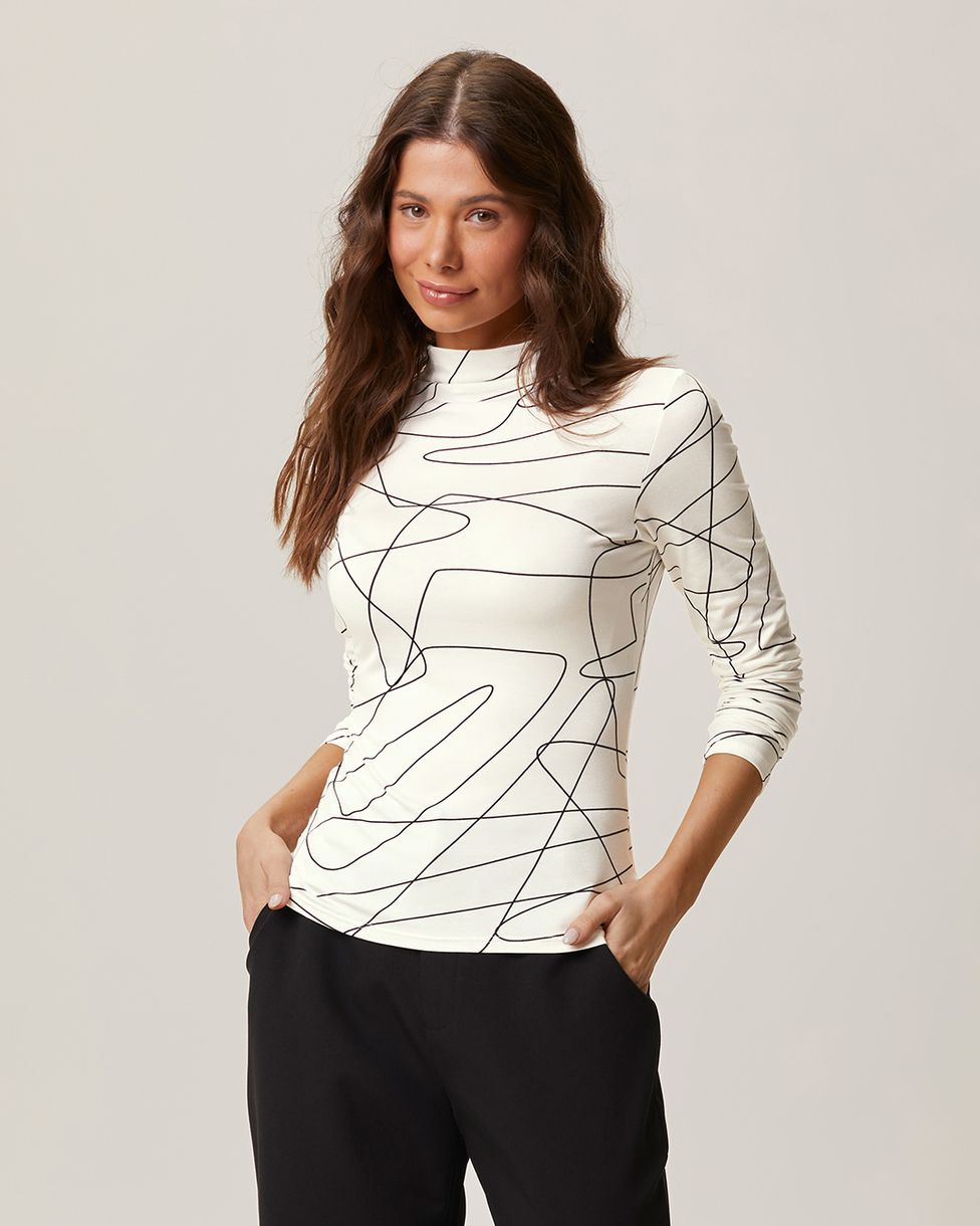 Blusa Feminina Estampada Gola Alta Em Viscose Stretch