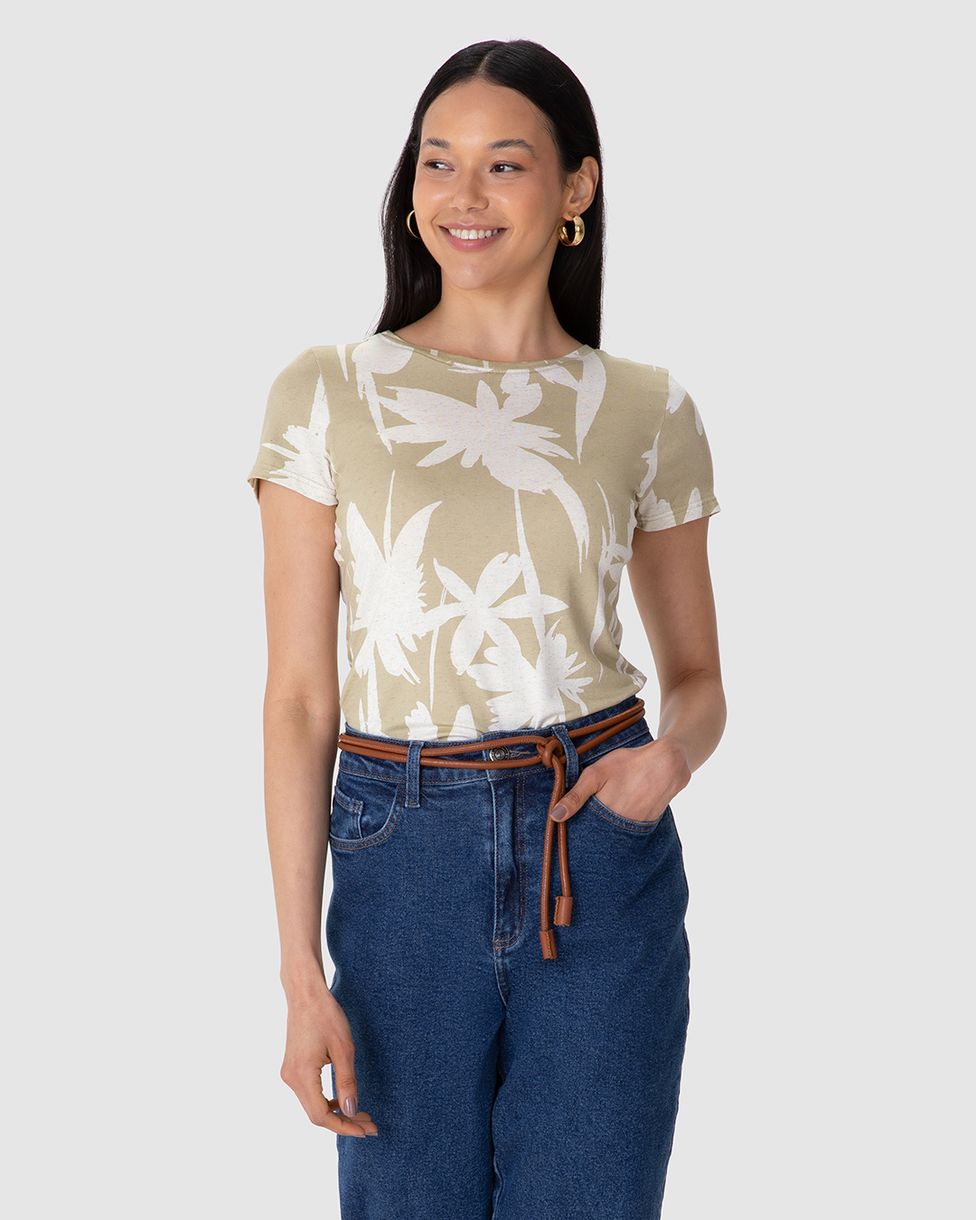 FemininoBlusas e CamisetasBlusas Manga CurtaBlusa Feminina Estampada Manga Curta Em Malha Viscolinho Stretch