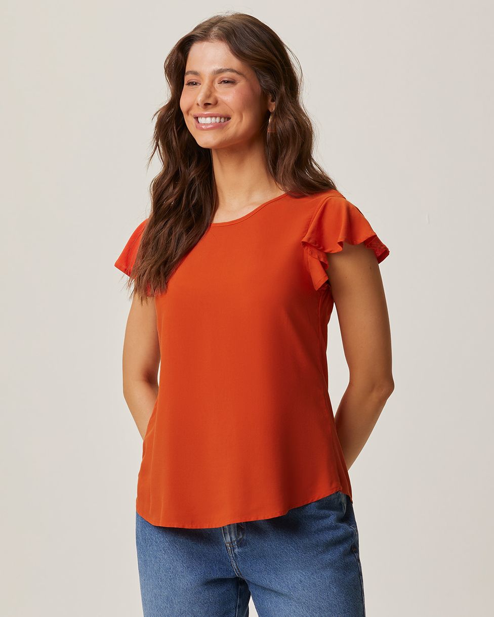 Blusa Feminina Evasê Manga Curta Em Viscose Laranja - P
