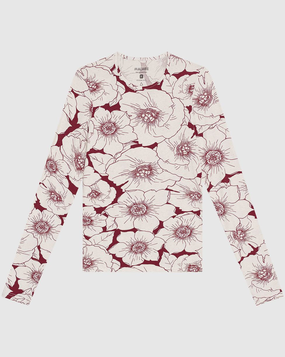 Blusa Feminina Justa Manga Longa Estampada Em Malha Viscolinho Stretch