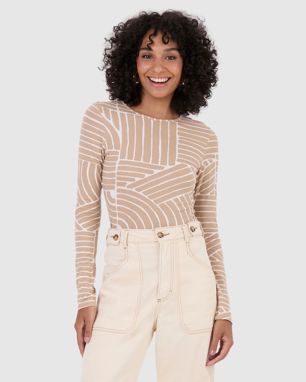 Blusa Feminina Justa Manga Longa Estampada Em Malha Viscolinho Stretch