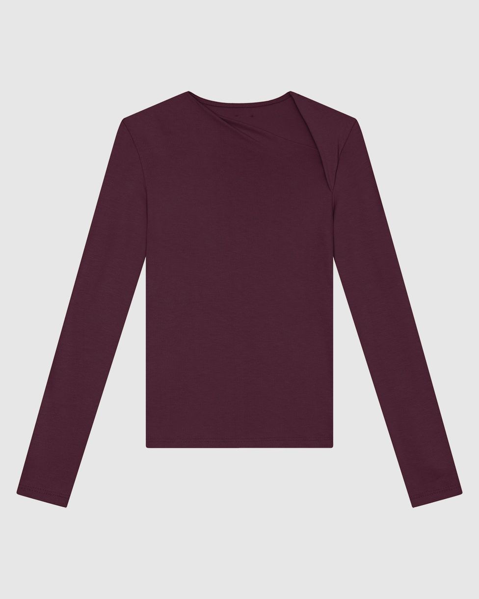 FemininoBlusas e CamisetasBlusas BásicasBlusa Feminina Justa Manga Longa Fenda No Ombro Em Viscose Stretch - ENFIM