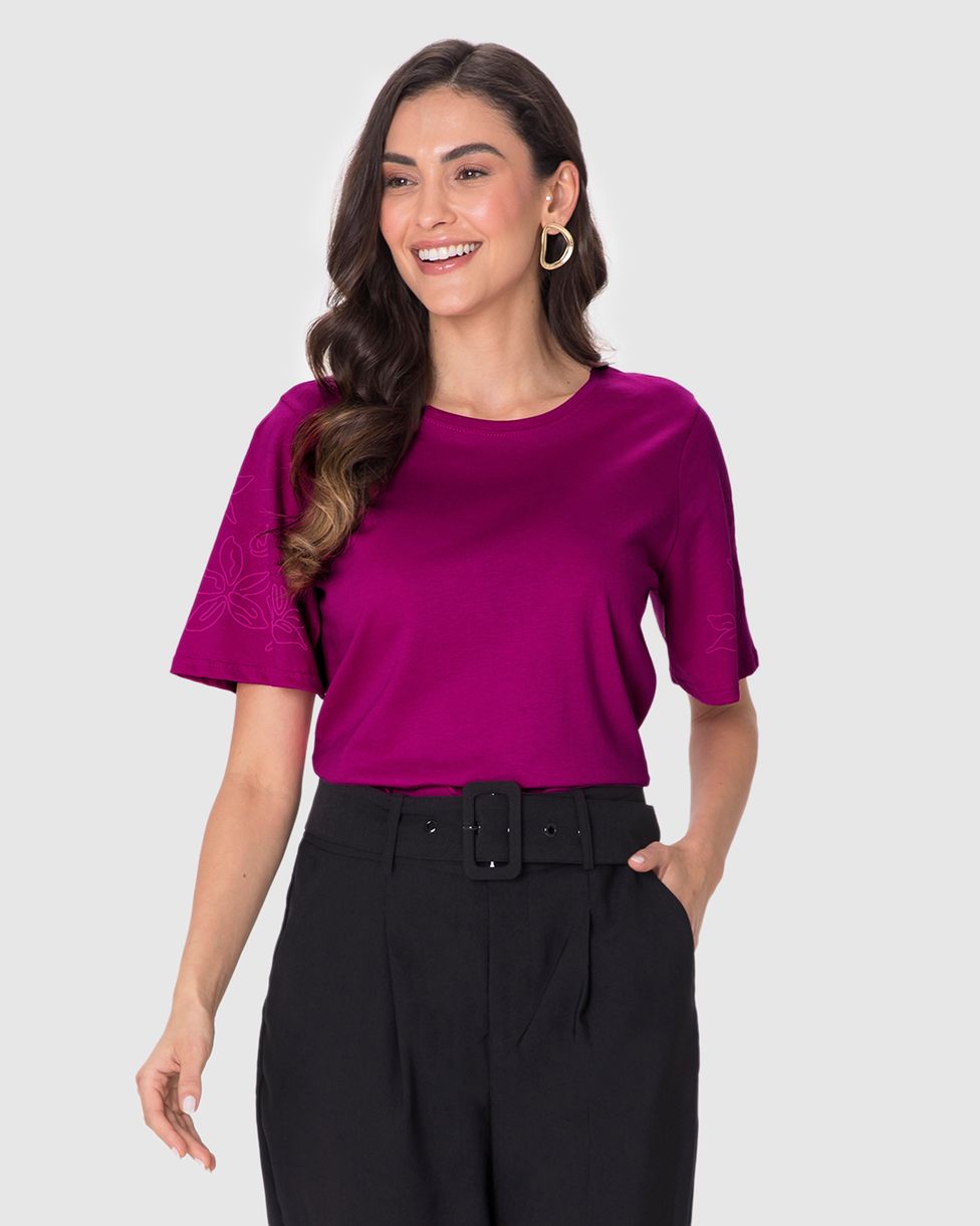 Blusa Feminina Manga Curta Com Estampa Puff Em Malha Comfy