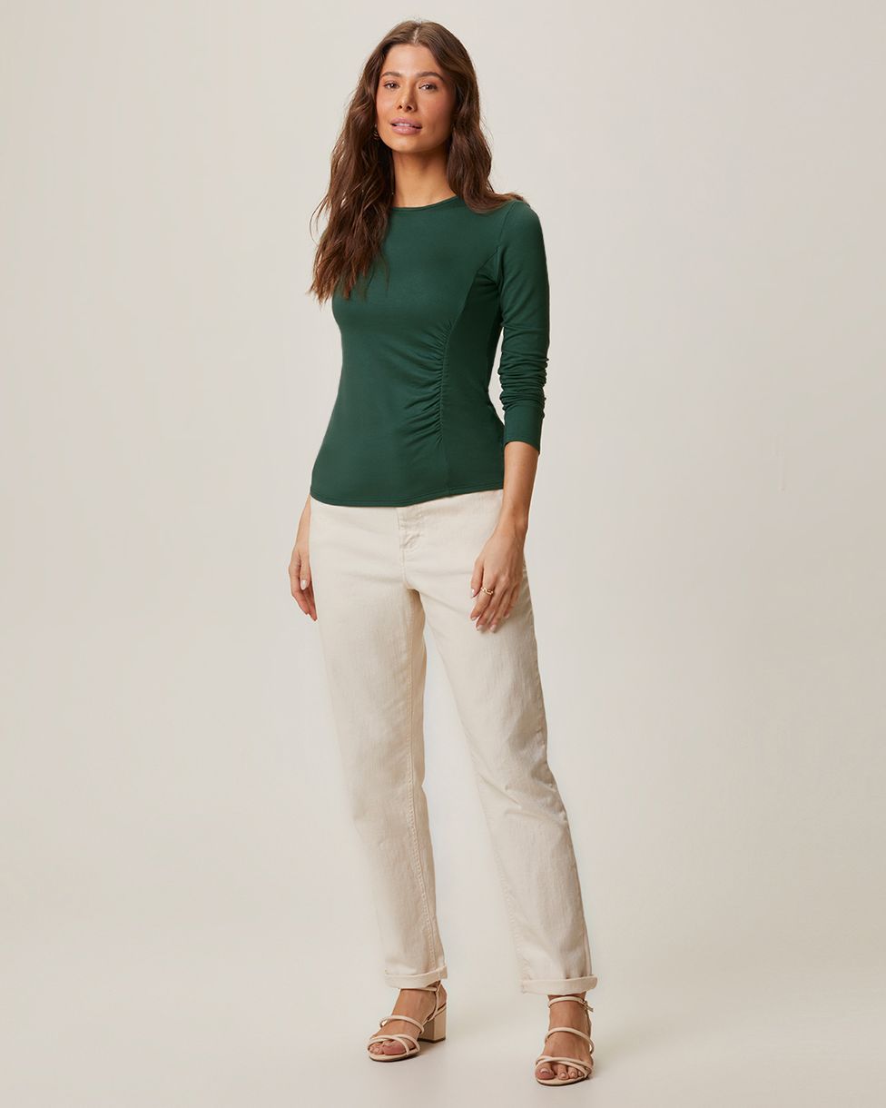 Blusa Feminina Manga Longa Franzido Frontal Em Moletinho De Viscose Verde - PP
