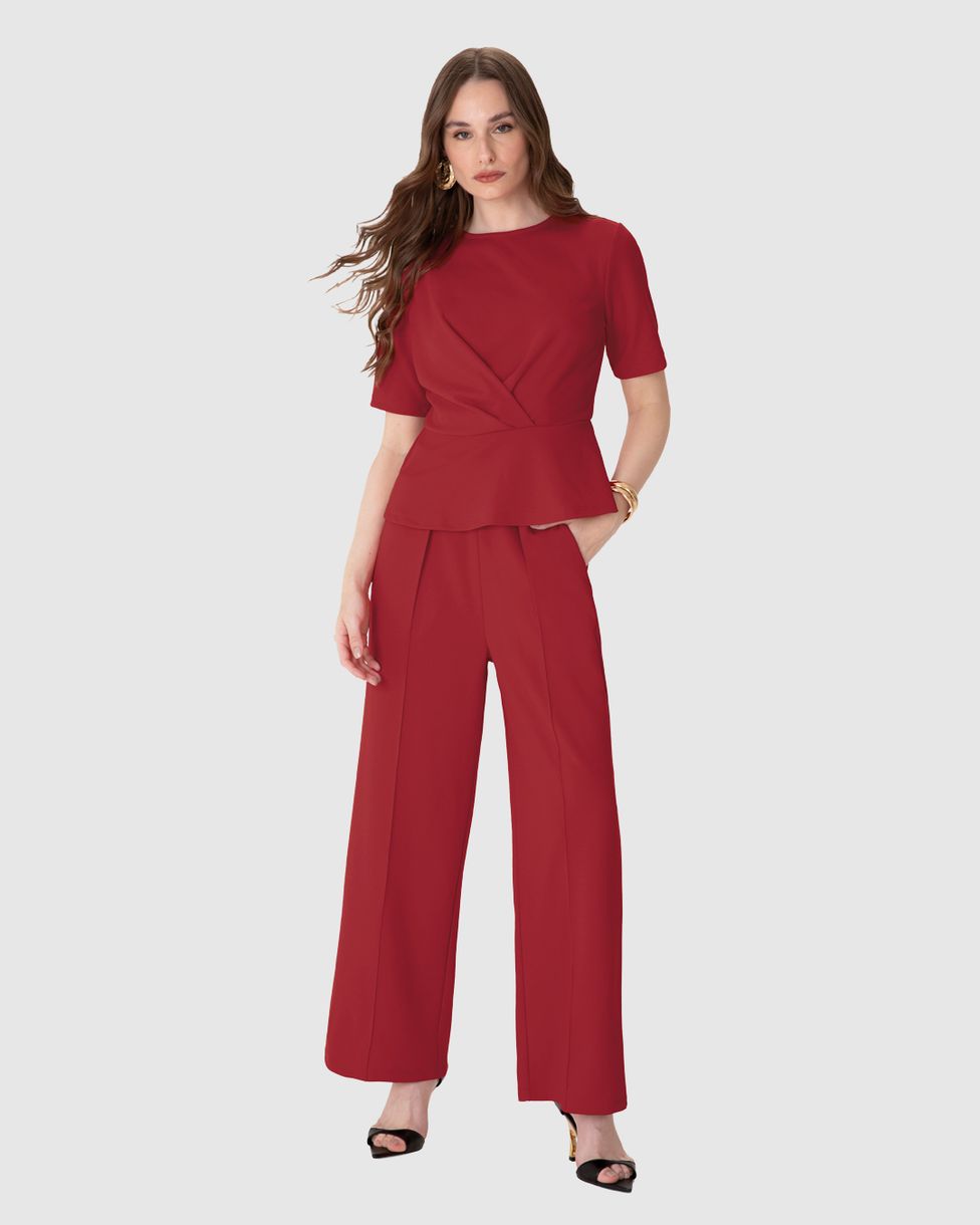 Blusa Feminina Peplum Torção Manga Curta Em Malha Creponada - ENFIM Vermelho - P