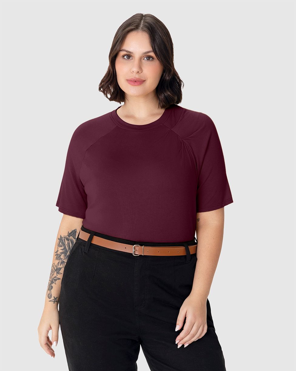 Blusa Feminina Plus Size Ampla Detalhe Costura Ombro Em Viscose Stretch