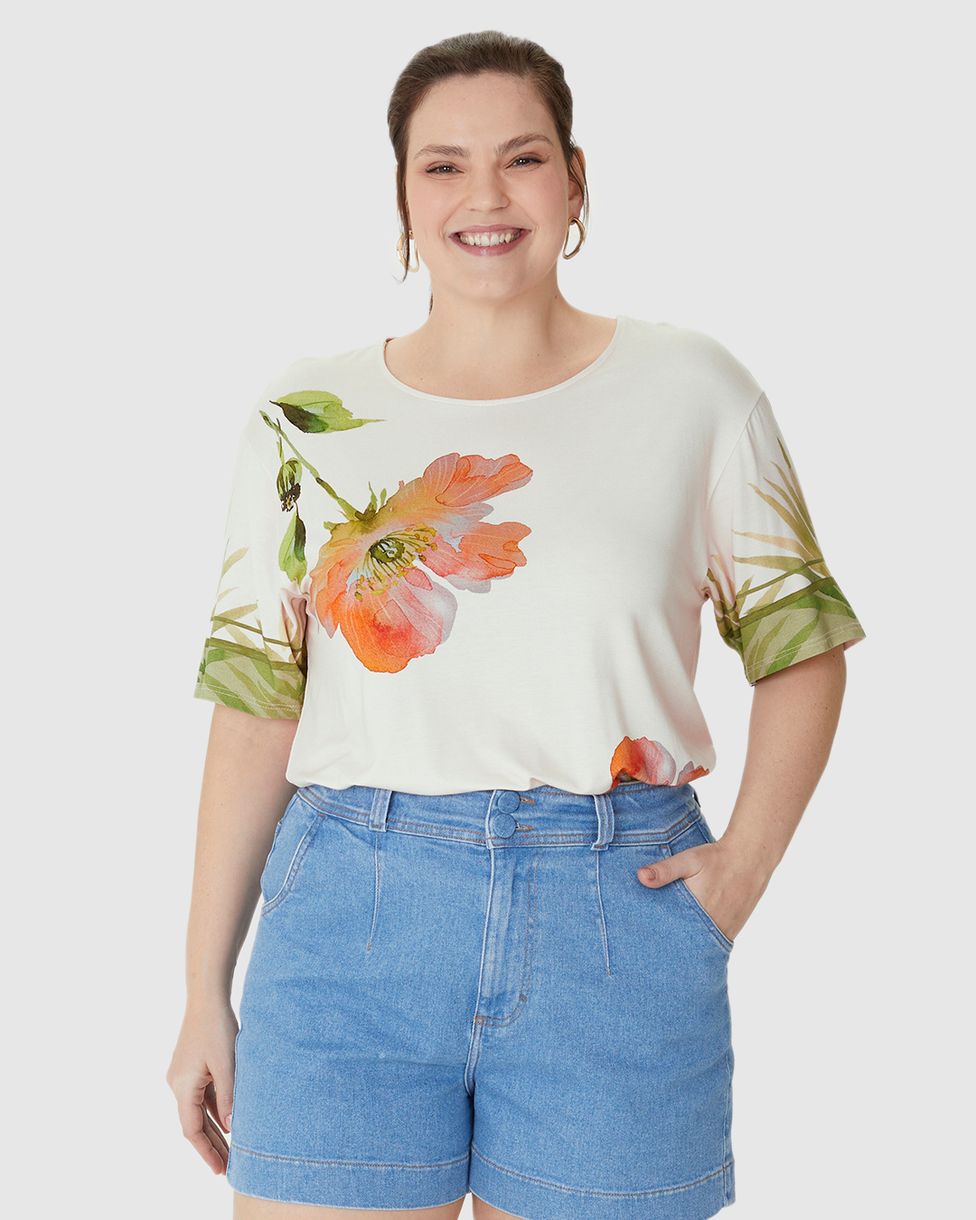 Blusa Feminina Plus Size Ampla Estampa Floral Em Viscose Stretch