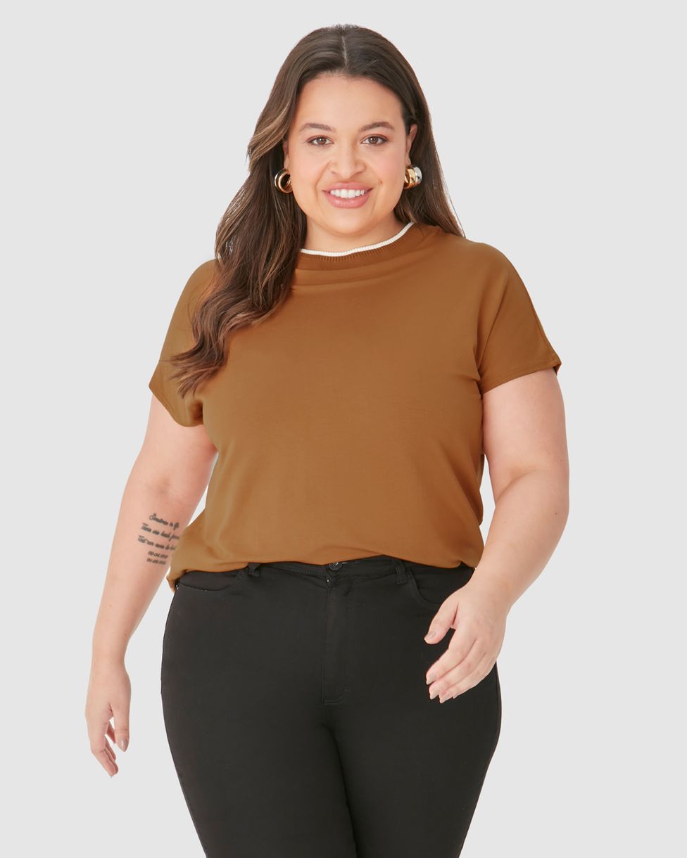 Plus SizeFemininoBlusas e CamisetasBlusa Feminina Plus Size Ampla Gola Retilínea Em Moletinho De Viscose