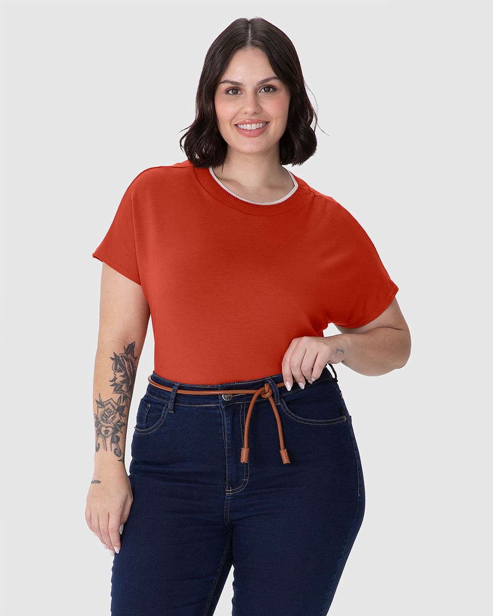 Blusa Feminina Plus Size Ampla Gola Retilínea Em Moletinho De Viscose Vermelho - G4