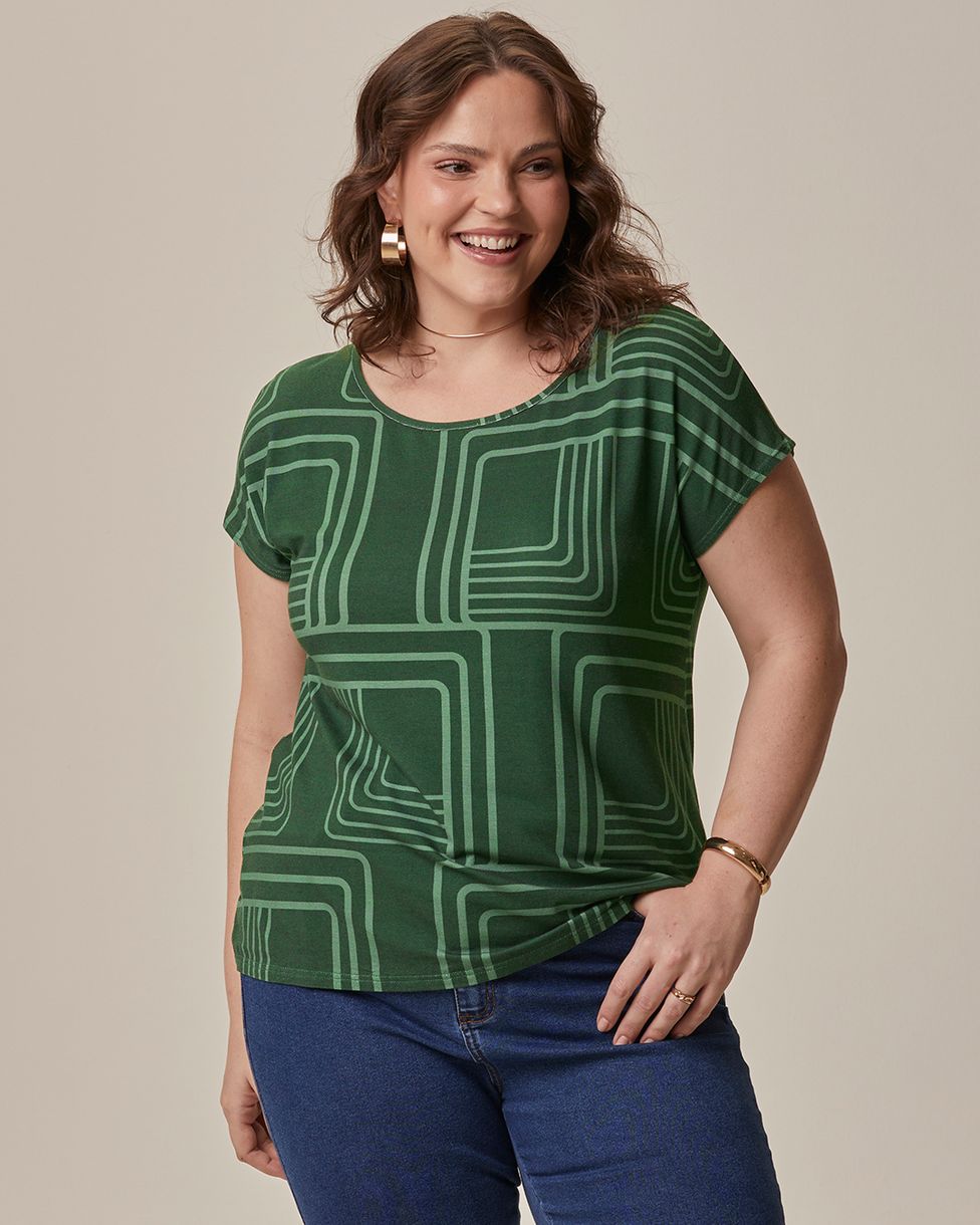 Blusa Feminina Plus Size Barra Mullet Estampa Digital Em Viscose Stretch Verde - G5
