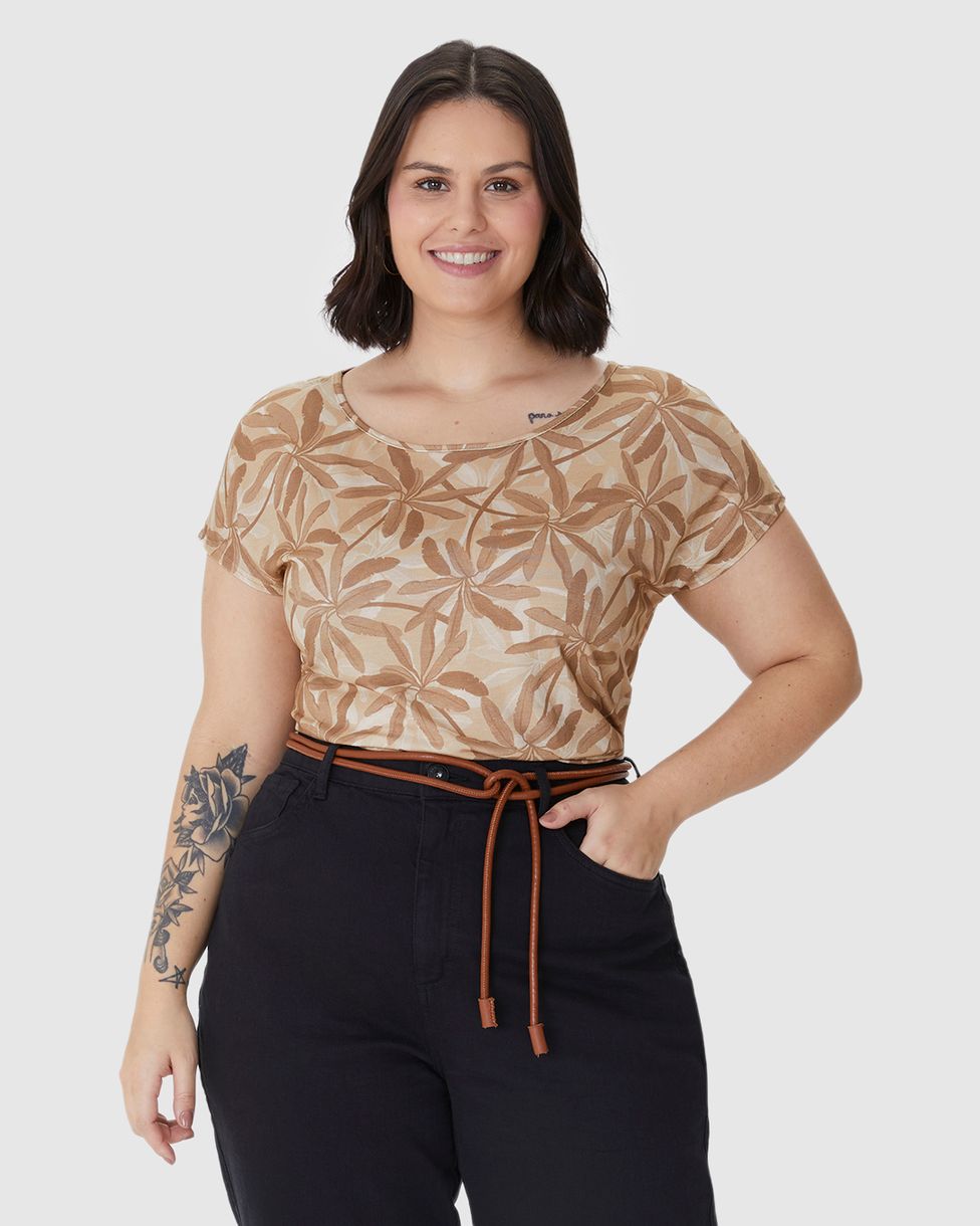 Plus SizeFemininoBlusas e CamisetasBlusa Feminina Plus Size Barra Mullet Estampa Digital Em Viscose Stretch
