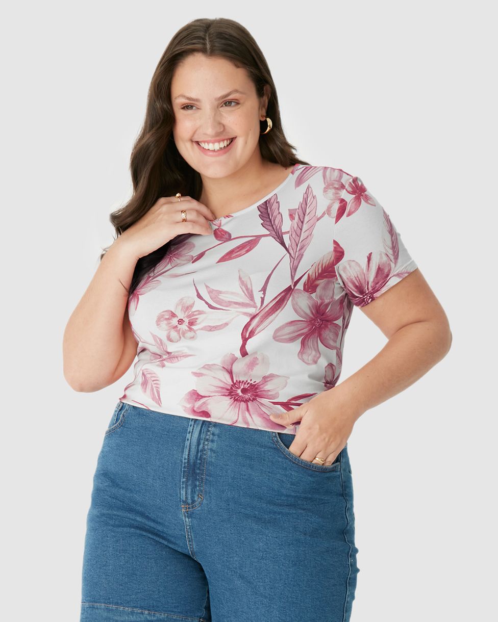 A Blusa Feminina Plus Size Estampa Floral Manga Curta em Viscose Stretch garante conforto, leveza e muito estilo. Com toque macio, caimento perfeito e estampa vibrante, é ideal para compor looks alegres e modernos em qualquer estação.