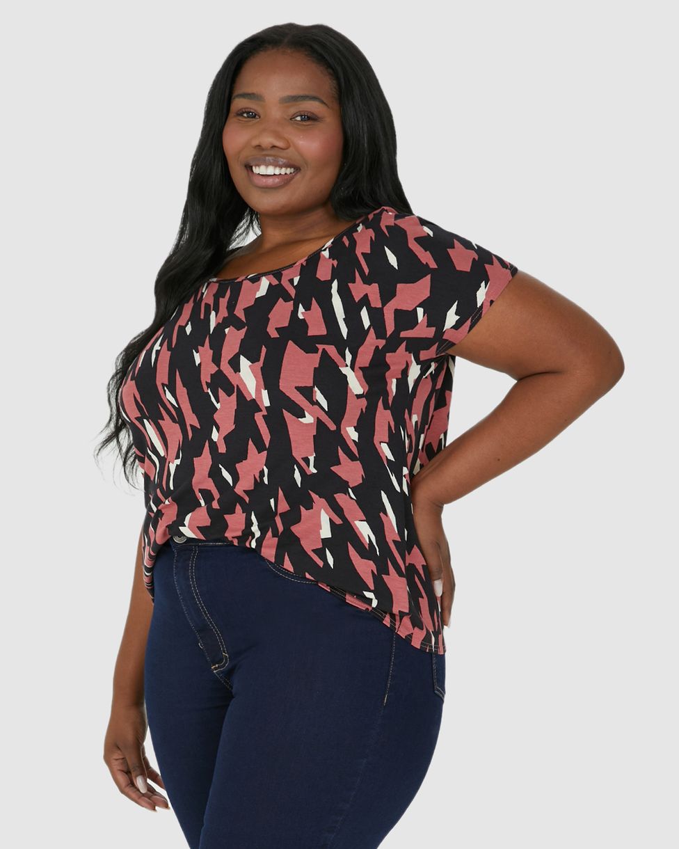 Blusa Feminina Plus Size Estampada Cava Japonesa Em Viscose Stretch