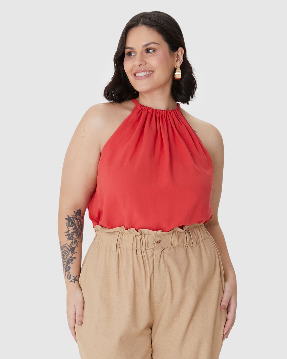 A Blusa Feminina Plus Size Evasê Amarração Costas em viscolinho texturizado é perfeita para o verão! Leve e soltinha, ela proporciona frescor, conforto e estilo, valorizando todos os tipos de corpo. O detalhe de amarração nas costas garante um charme especial.