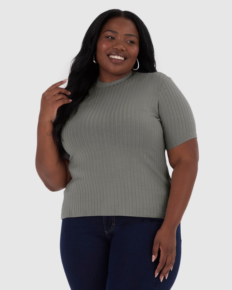 Blusa Feminina Plus Size Gola Alta Em Viscose Canelada