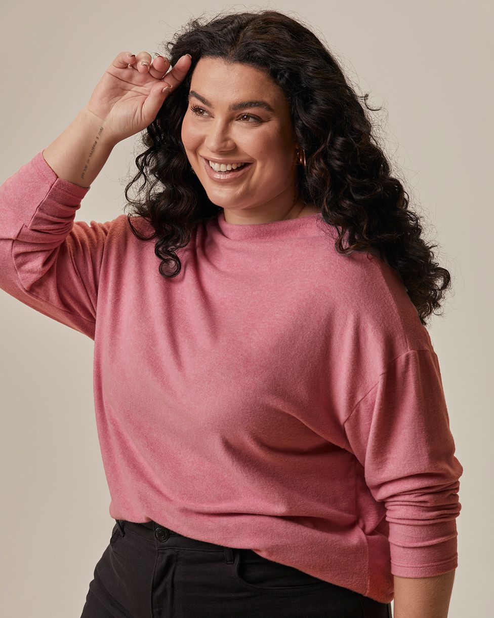 Blusa Feminina Plus Size Gola Dobrada Cava Deslocada Em Malha Térmica Rosa - G5