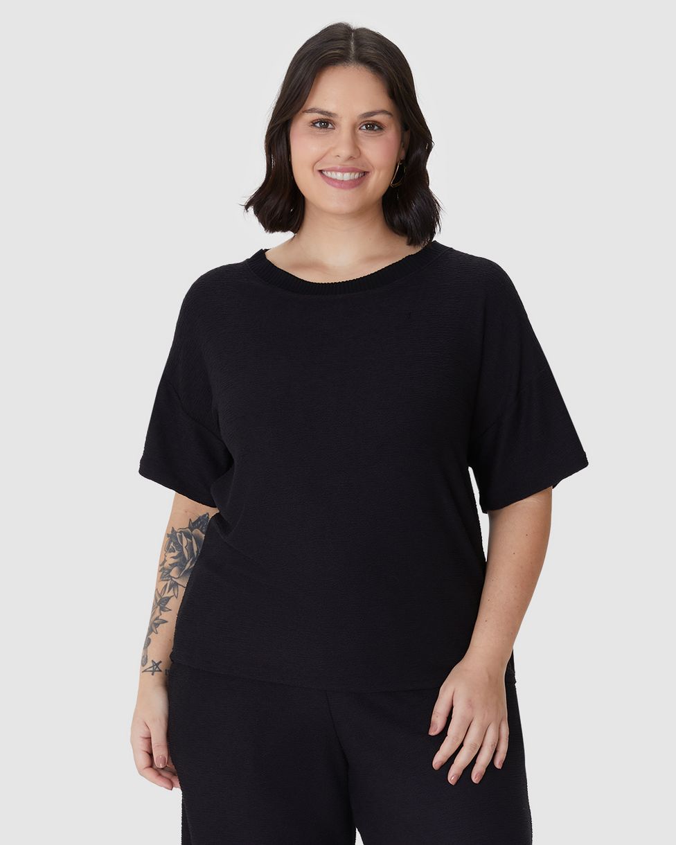 Plus SizeFemininoBlusas e CamisetasBlusa Feminina Plus Size Mullet Manga Curta Em Malha Viscose Texturizada
