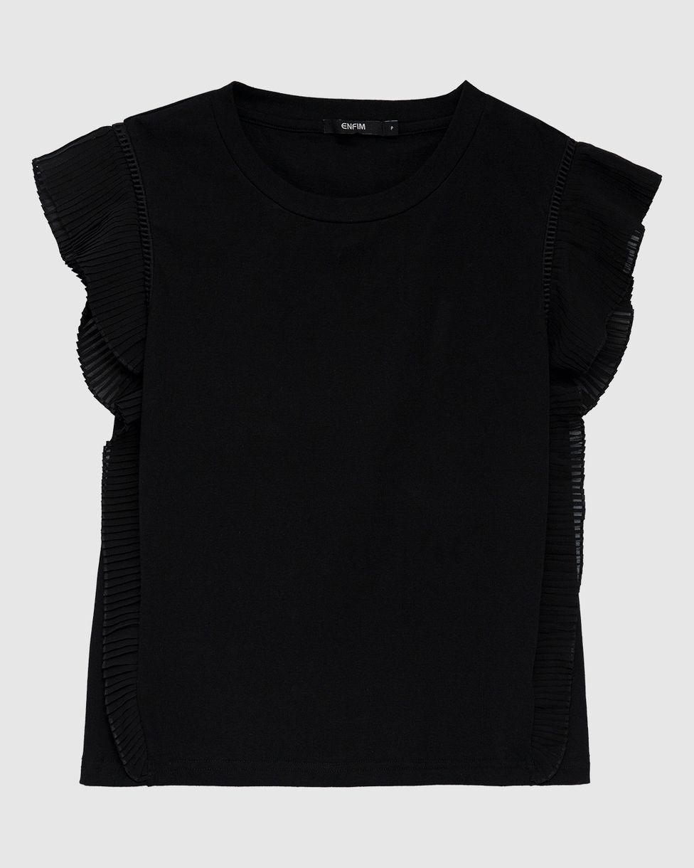 Blusa Feminina Slim Detalhe Plissado Em Algodão Com Elastano - ENFIM