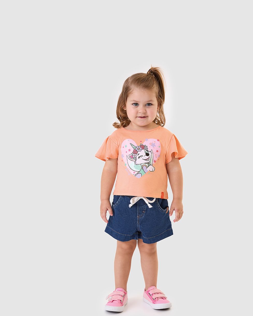 Blusa Infantil Menina Box Estampa Glitter Patrulha Canina Malwee Kids Laranja - 1