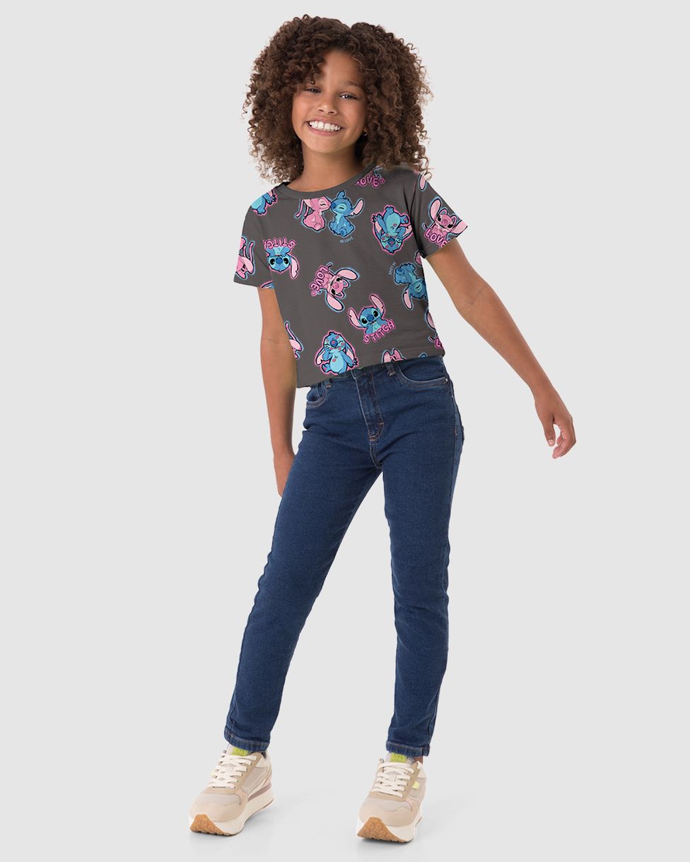 Blusa Infantil Menina Box Estampa Stitch Disney Em Algodão Malwee Kids Cinza - 10