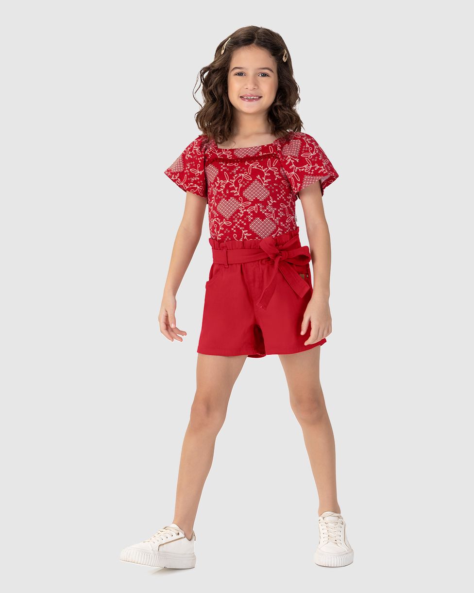 Blusa Infantil Menina Cropped Detalhe Renda Pompom Malwee Kids