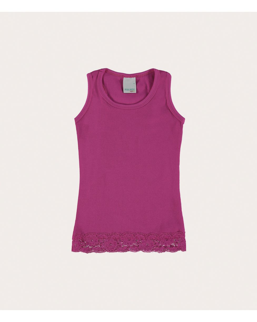 Regata infantil confeccionada em tecido de Ribana Conforto. Apresentando uma modelagem com caimento mais ajustado no corpo, essa peça com detalhe de barra rendada ainda possui decote redondo e alças medianas. Os básicos da Malwee Kids são essenciais para acompanhar o crescimento das crianças, são peças versáteis e duráveis além de terem a melhor qualidade do mercado brasileiro. Com a fibra de algodão em sua composição, a malha ribana é um tecido em textura canelada, possuindo ótima elasticidade e caimento corporal. Uma regata de muita versatilidade e perfeita para os momentos mais descontraídos da sua pequena. Combine com calça jeans da Malwee Kids e tênis de caninho!